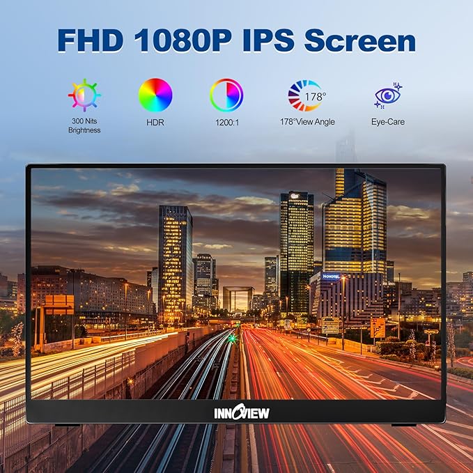 - [IPS Portable Screen] InnoView laptop screen extender play an important role in many scenarios. For example, a large screen improves the gaming experience. Expanding the work area improves productivity. Remote work during travel or outdoor. Demonstration in meetings, exhibitions or sales, etc. Suitable for connecting HP laptop, Lenovo laptop, Dell laptop, Asus laptop, Macbook, iPhone, Game Console, Tablet, PS, Xbox, etc