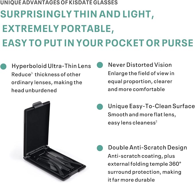 - Extremely Portable: Has a half-folded spectacle frame, multiple folding temples, and almost no thickness of the glasses case, this pair of foldable glasses can be put into most pockets or your wallet, occupying no space at all, extremely compact, and super portable. It can accompany you to any place
