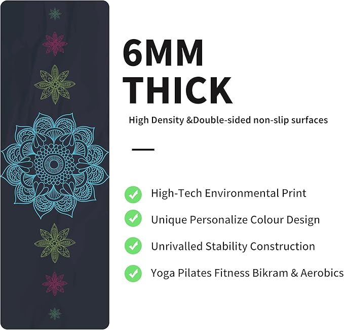 nuveti Yoga Mat Print Extra Thick TPE Non Slip Fitness Exercise Mat with Carrying Bag,72"x24" Extra Thick 6MM Exercise & Workout Mat for Yoga, Pilates Fitness and Floor Exercises