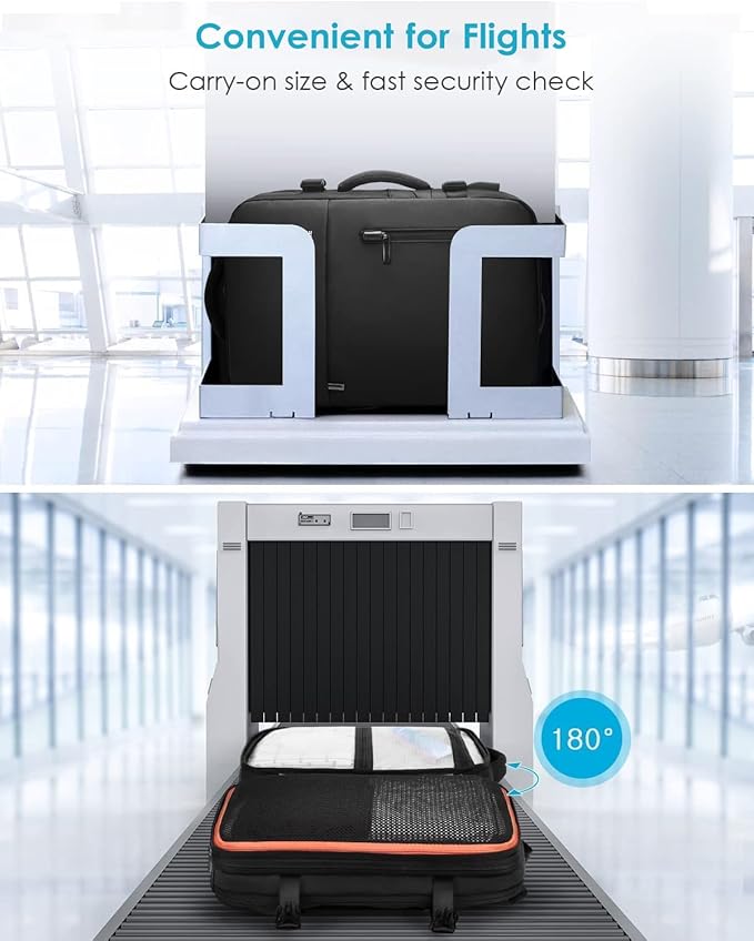- 【AIRLINE APPROVED PERSONAL ITEM BACKPACK】: This laptop backpack can be easily opened 90-180 degrees at airport security, making it perfect for carry-on and air travel. Our travel backpack meets personal item requirements of airlines such as Spirit, Frontier, United, Easy Jet, Jet Blue, etc., and can be placed under the seat or overhead in standard carry-on size, making it an ideal Halloween Christmas gift for men, frequent travelers, and also ideal for camping and hiking