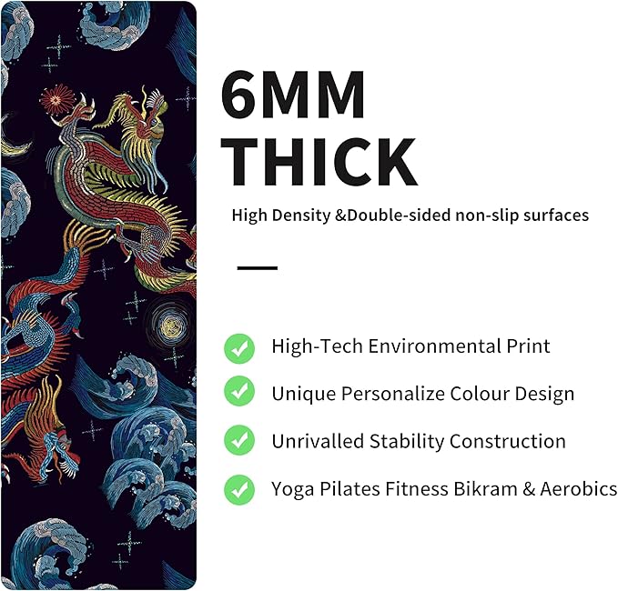 nuveti Yoga Mat Print Extra Thick TPE Non Slip Fitness Exercise Mat with Carrying Bag,72"x24" Extra Thick 6MM Exercise & Workout Mat for Yoga, Pilates Fitness and Floor Exercises