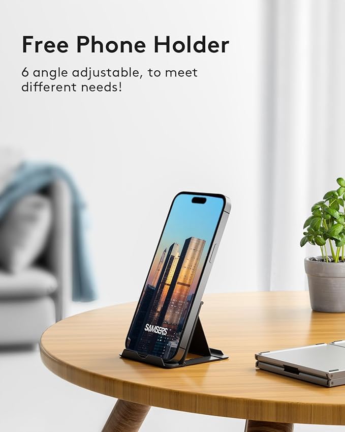 - 【Dual-Mode Foldable Wireless Keyboard】Samsers multi-device Bluetooth keyboard supports 3 devices connection simultaneously, seamless switching without delay (2.4G wireless + Bluetooth 1 + Bluetooth 2). The attached 2.4G receiver allows laptops or desktops without Bluetooth function to connect and use worry-free! You can type, switch, and continue typing!