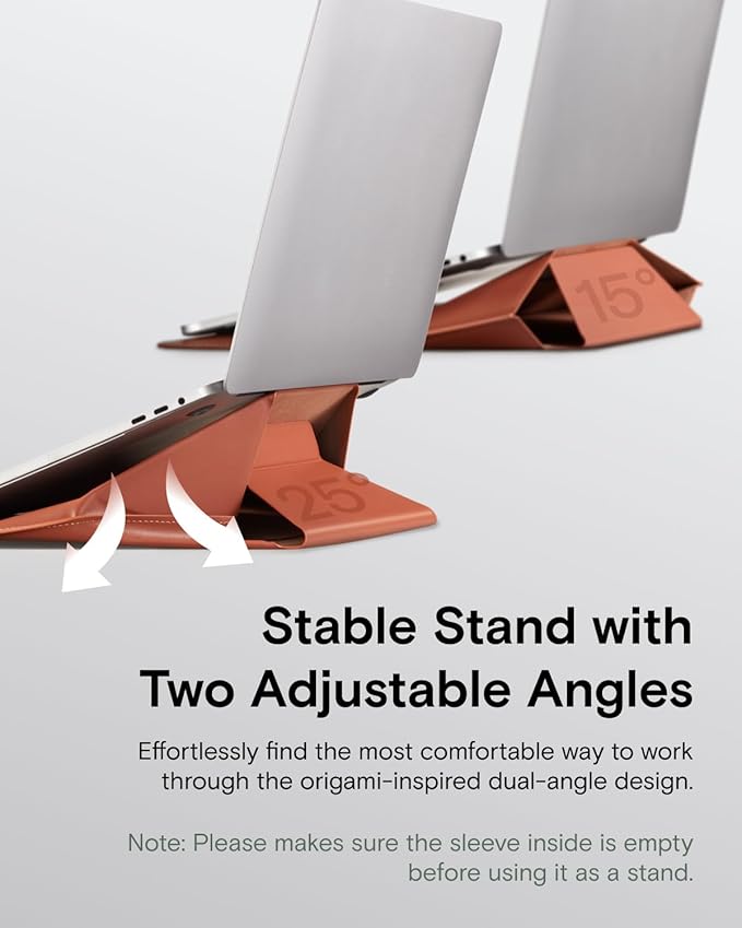 - Two Angles Laptop Sleeve Stand: Instantly convert this sleek Laptop Sleeve into a sturdy Laptop Stand. Features dual-angle adjustment (15° for typing; 25° for viewing) to elevate your screen, reducing neck/wrist strain from poor posture. More than a protective Laptop Bag, this ergonomic Computer Bag works anywhere – transforming your carry sleeve into a pain-relieving workstation.