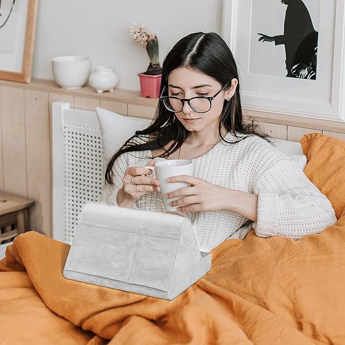 Soft Tablet Stand Pillow with Pocket,Adjustable 3 Viewing Angle,Lazy Holder for Bed Sofa,Compatible with iPads Tablets eReaders Smartphones Books Magazines (Dark Gray)