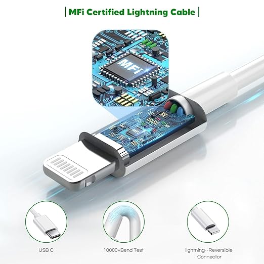 - [ Multi-Security Protection ] Super Quick iPhone Charger USB C Fast Charging with 6FT Long iPhone Charger Cable Lightning Cable owns a built-in multi-protection system, match the current required by the lightning device automatically, avoiding over-voltage,over-charge,over-heat, etc. Fast, safe, and stable charging for iPhone 14 13 devices.