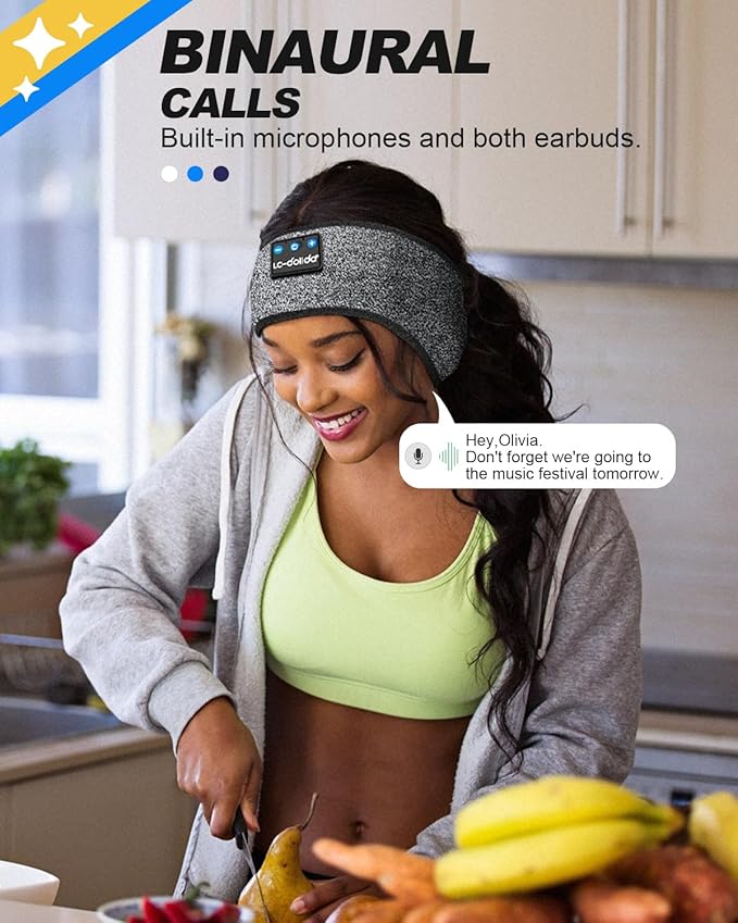 - ⛹️【Sleep Headphones & Sports Bluetooth Headband & Bluetooth Sleep Mask 3 in 1】 LC-dolida Sleep headphones feature a Breathable headband design with wireless headphones inside that allows you to listen to music without having to wear additional headphones and protects you from being disturbed by your mess hair and sweat. Sleep headphones headband headphones are perfectly suitable for travel, gym, running, yoga as well as sleeping.