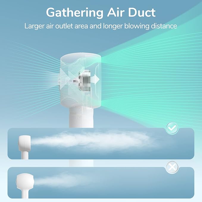 - Upgraded Turbo Engine: Aircraft engine turbine technology to provide super power. The air volume of the handheld fan is 30% higher than that of ordinary fans. The speed is as high as 7500r/min. The 7 wedge-shaped fan blades absorb wind force, and the wind force is increased by 3 times through the air duct