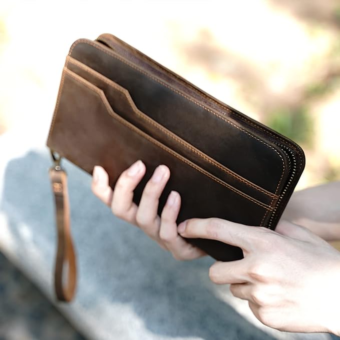 - Premium Material - Each wallet is made from luxury full grain leather with YKK zippers. It has a smooth, soft and luxurious feeling in your hand.