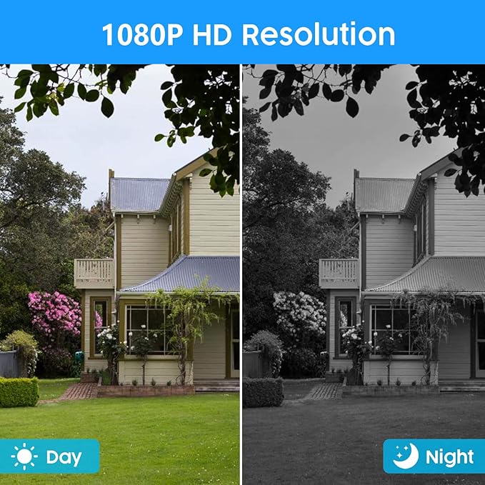 - 【Infrared Clear Day Night Vision】Featuring 3.6mm LEDs with IR-CUT function, 65ft Night Vision range. The camera's infrared mode is automatically activated in low lighting conditions. It can clearly monitor everything even at night.