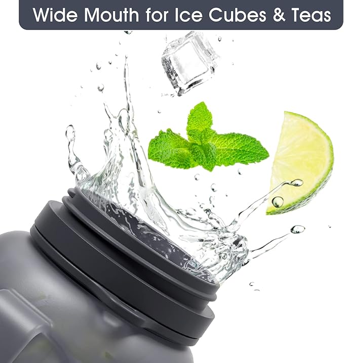 - Two water drinking methods: Take our large water bottle with straw, you can have flexible drinking experience from sipping to fast water flow. Meet your different drinking water needs for yoga, biking, cycling, camping, swimming, gym, home and office.