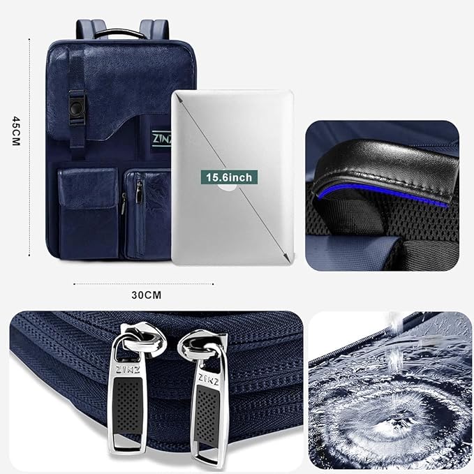 - Material and Features: Made of premium synthetic leather and polyester cloth are waterproof and durable. The travel laptop backpack owns a variable capacity for more flexibility to load. Two modes for daily commute and business trip and easy to transform between both. The slim mode for going home and office by cycling, the expanded mode of the large capacity to meet your camping, day trip and overnight trip.