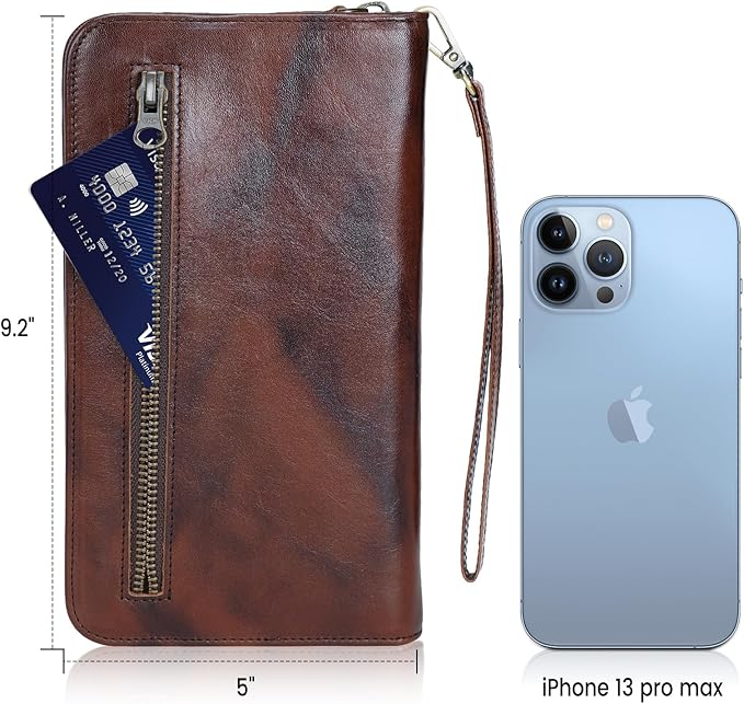 - Premium Material: Each wallet is made from luxury full grain leather with YKK zippers. It has a smooth, soft and luxurious feeling in your hand