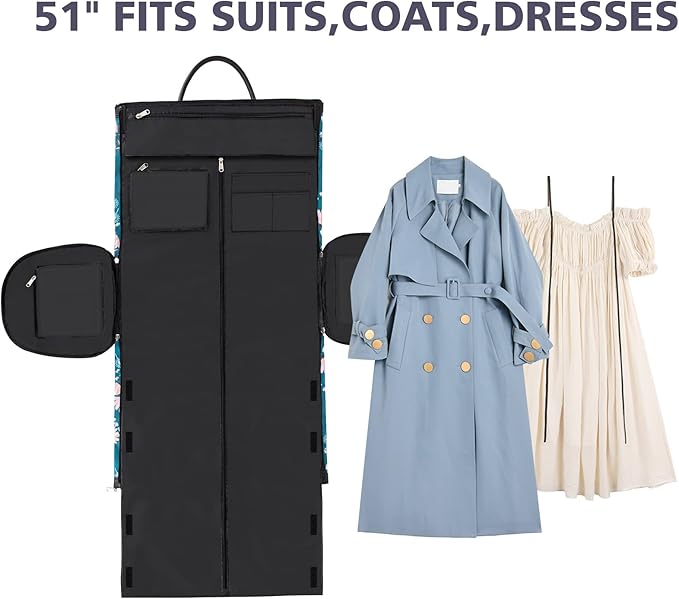 • Large Capacity Design: The size of this travel garment bag: 21*11*12.5(L*W*H). This large sized carry on garment bag can hold 2-4 days daily essentials such as suit, dress, shoes, toiletries, cosmetics and electronic devices. Keep everything you need well-organized with this travel garment bag on the go.