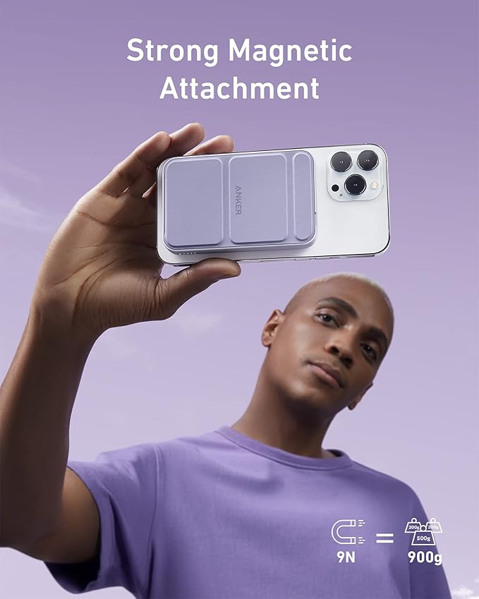 Anker 622 Magnetic Battery (MagGo), 5,000mAh Foldable Magnetic Wireless Portable Charger with Stand and USB-C Port (On The Side), Magsafe-Compatible for iPhone 16/15/14/13 Series