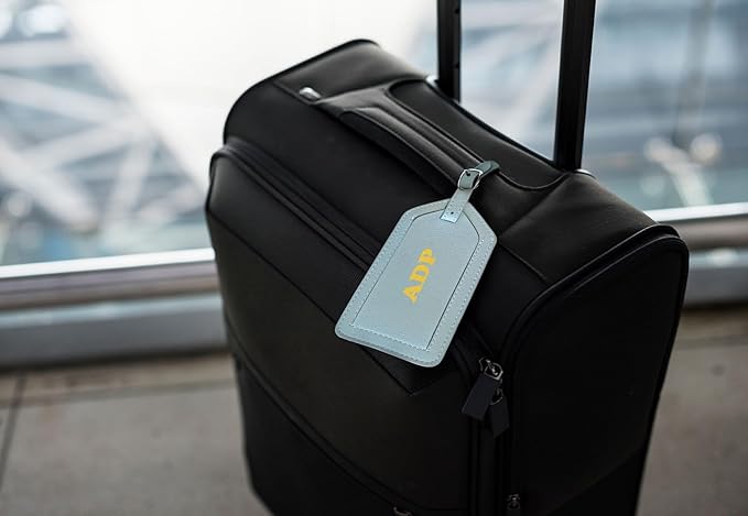 - Two Luggage Tags: strong & adjustable buckle and strap keeps securely fastened. Includes protective leather flap for privacy protection. Dimensions: 2.75" x 4.5" (not including buckle)