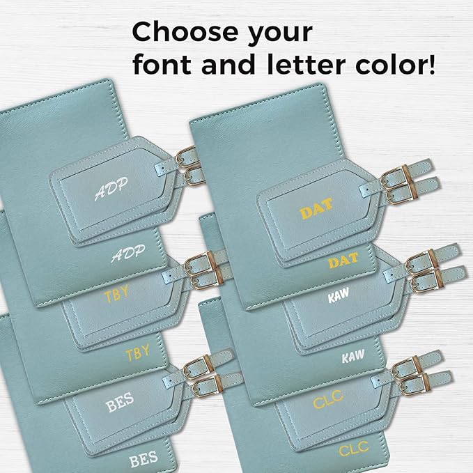Personalized Monogrammed Chambray Leather RFID Passport Wallet and 2 Luggage Tags