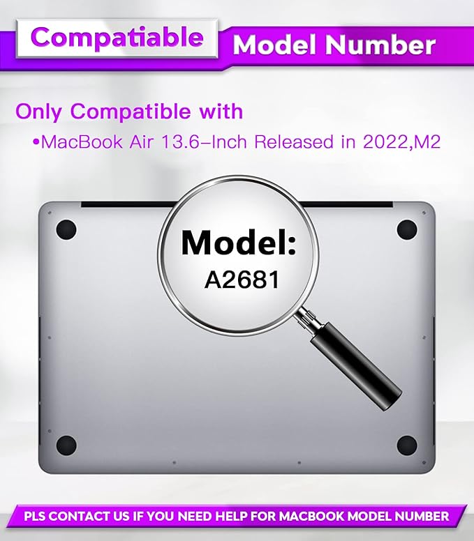 - [MacBook Air 13.6 inch Privacy Screen] Compatible Macbook Pro 13.6 inch M2 Chip 2022, Privacy Screen is designed to integrate seamlessly with your MacBook Pro 13.6 the Inch Year 2022. compatible with model number A2681. Please check the model number at the bottom of the Macbook.