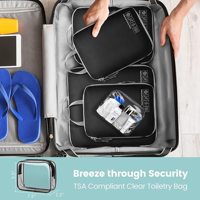 - Stay Organized & Protect Privacy: Keep your belongings neatly sorted with 3 sizes compression packing cubes travel; Separate clean and dirty clothes for hassle-free travel; Quick access to items without rummaging through your entire luggage; Ideal for TSA checks to maintain privacy and convenience