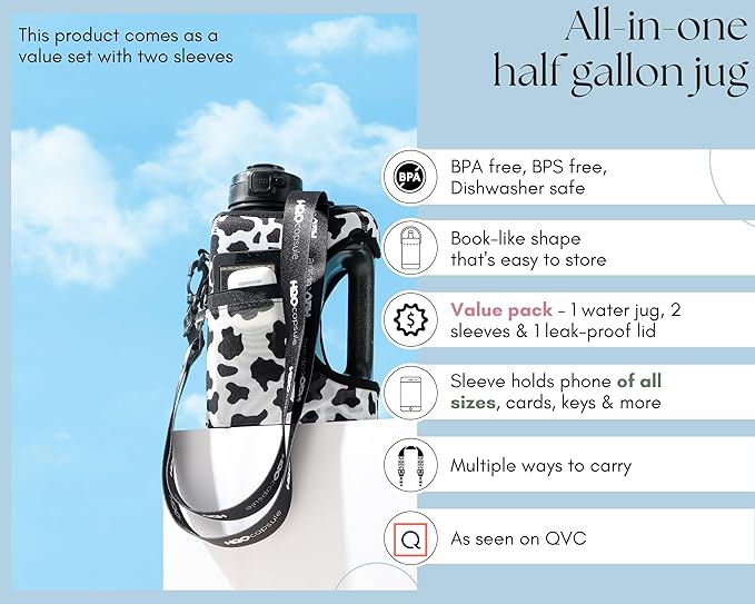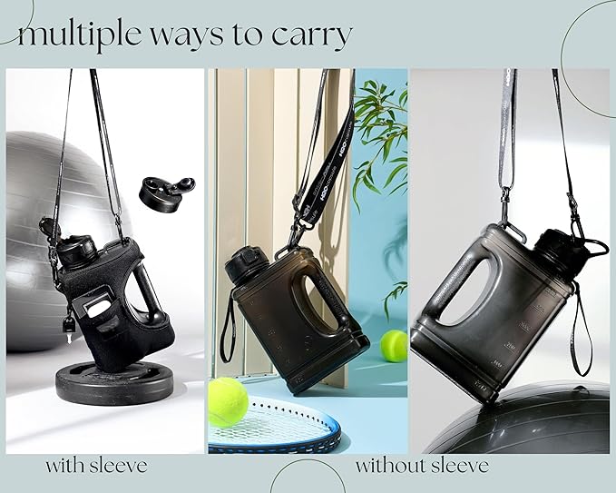 - STAY HYDRATED IN STYLE: No more wrestling with your keys, or leaving your phone on the dirty gym floor. The H2O Capsule is the only sports water bottle with a protective sleeve that doubles as handy storage! Hold your phone, keys and cards while you work out and look good doing it. This half gallon jug is designed with durable materials with a handle to carry wherever you go!