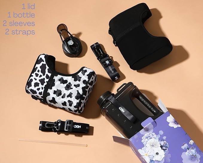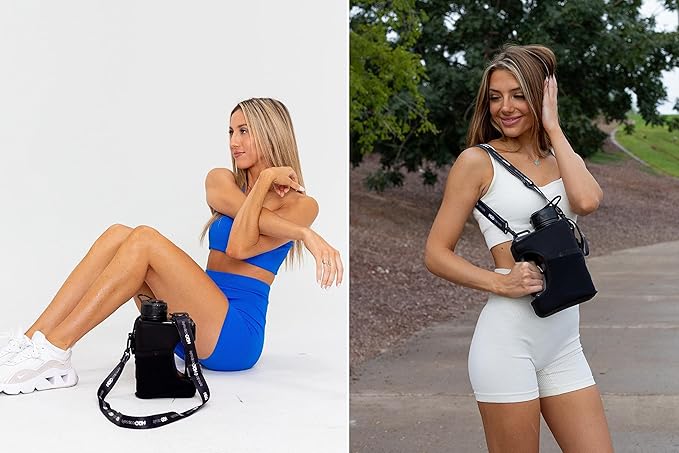 - STORAGE SLEEVE HOLDS ANY PHONE: A patent-pending removable neoprene protective sleeve has an easy access pocket to carry a cell phone of any size, air pods, lipstick and more, and an adjustable shoulder sling strap is ideal for walking, hiking and travel! Our plastic water bottles come in a variety of patterns and colors for any style you like.