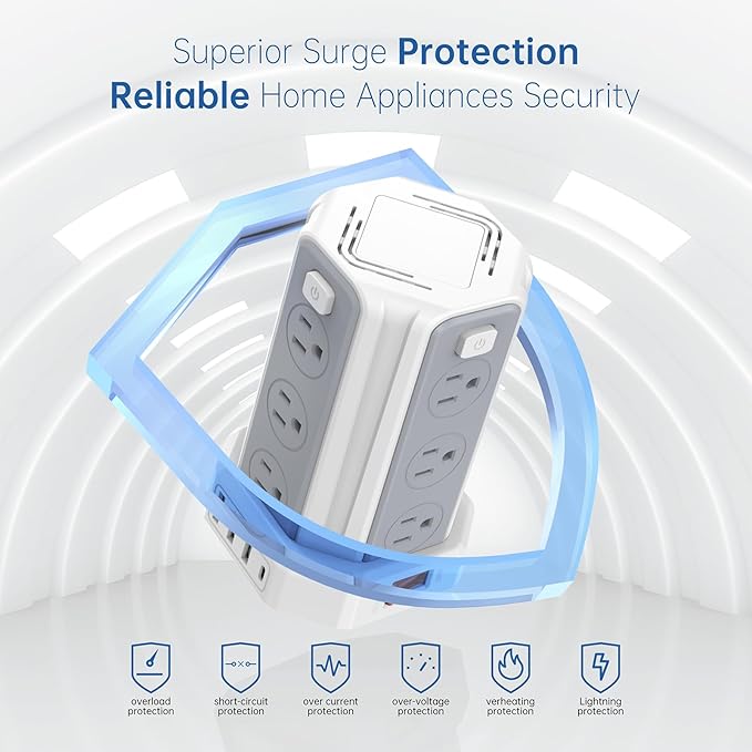 - 【Advanced Surge Protection & Safety Assurance】 Engineered as a premium surge protector with USB ports, this outlet extender features overload protection, short-circuit prevention, and automatic shutoff technology. Safeguard phones, laptops, and appliances with fire-resistant materials and child-safe shutters. Ideal for power strips with surge protection, it ensures your devices stay protected from voltage spikes.