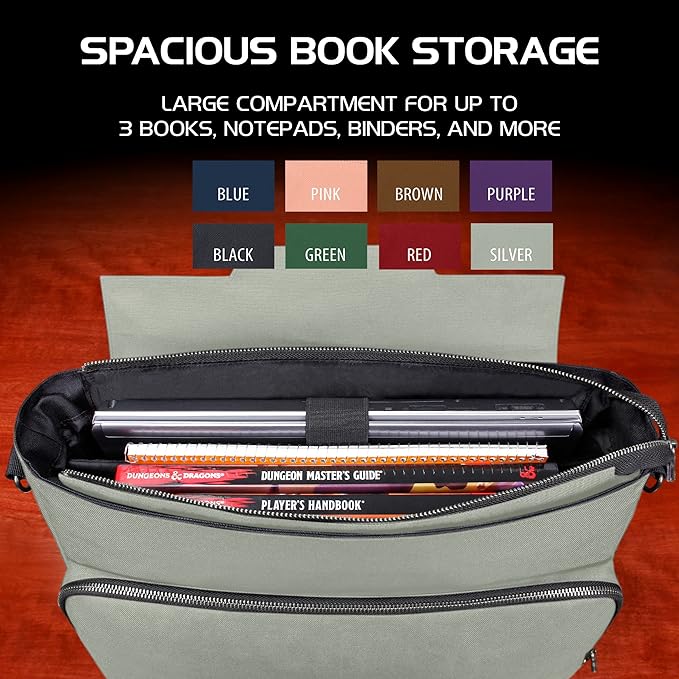 - COLLECTOR EDITION RPG PLAYER'S DND BAG: Crossbody style messenger bag with room for 2 to 4 of your favorite RPG books, complete with a padded divider to organize binders, character sheets and more