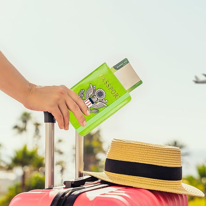 - RFID Security: The leather passport holder rfid blocking has a special material to block RFID signals so that the passport organizer can protect your personal information in your passport and credit cards from unauthorized scans. RFID blocking shielding material of the passport holder men women is used to prevent thieves from swiping your credit card to steal your personal information in airports or crowded places.