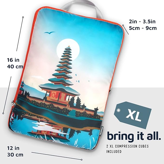 - USE EXPANDED OR COMPRESSED- Use these like normal packing cubes when you need to pack more. Packing less? Use the compression zipper to save even more space! Extra Large Dimensions Compressed size: 15.7x11x4in Large Dimensions Compressed size: 14x10x1in Expanded Size: 14x10x4in Small Dimensions Compressed size 10x7x1in Expanded Size: 10x7x4in