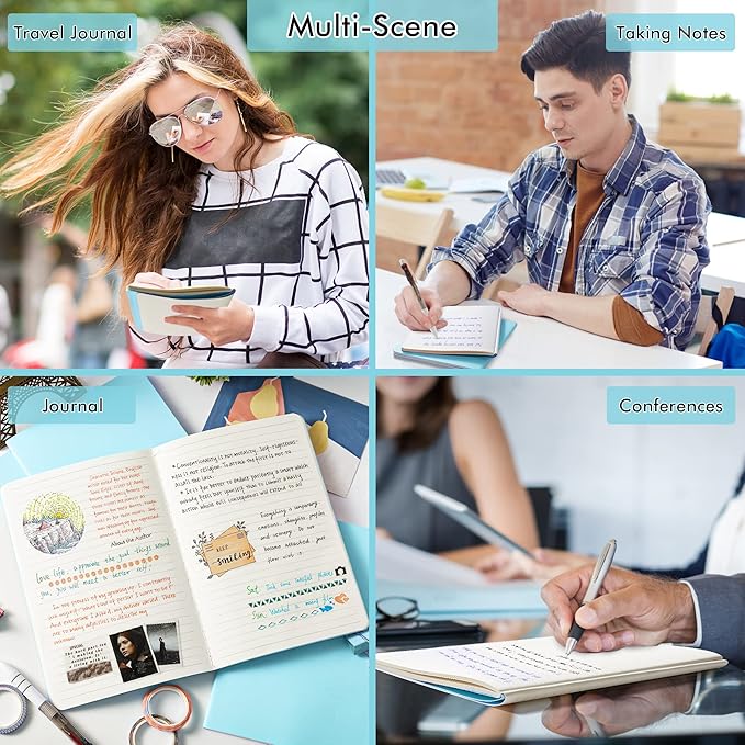- These travel journals bulk for women have 92 blank lined pages (46 sheets), which would be sufficient for daily usage. The note taking notebooks have a smooth cover, round corners and tight stitching, which are designed to lay 180° flat. Some quick notes can help you remember important dates and find the page you want in a very short time.