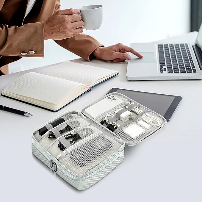 SELLYFELLY Electronics Travel Organizer, Double Layer Cable Organizer Bag Watreproof Electronics Accessories Storage Bag for Cord, Charger, Phone, Power Bank, Hard Drive