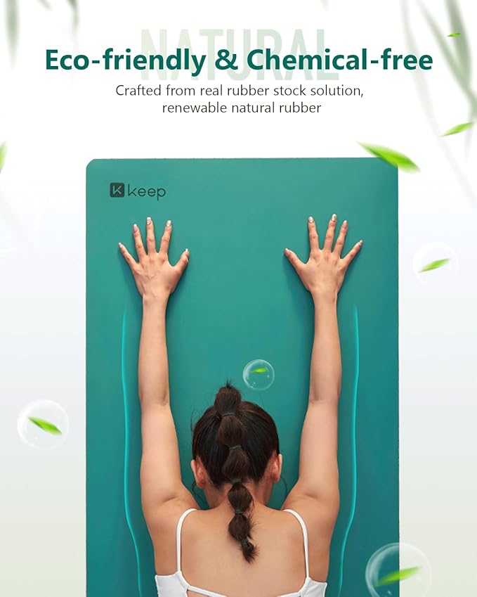 KEEP Professional Yoga Mat with Strap for Men and Women, 5mm Heavy High-Density Natural Rubber Mat for Premium Material Superior Grip, Non-Slip, Eco-Friendly 72"x26" Exercise Mat