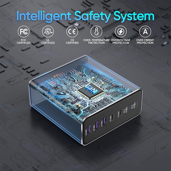 - 7 MultiProtect Safety Systems: Our 220w usb c charger block is equipped with enhanced surge protector: Temperature Protection, Over-Current, Over-voltage, Overcharge, Overload, Overheat and Short circuit. The certification authority of our usb-c charger is in line with UL, CE, FCC, ensuring 100% for you and your device's protection. So we are confident in providing lifetime warranty.