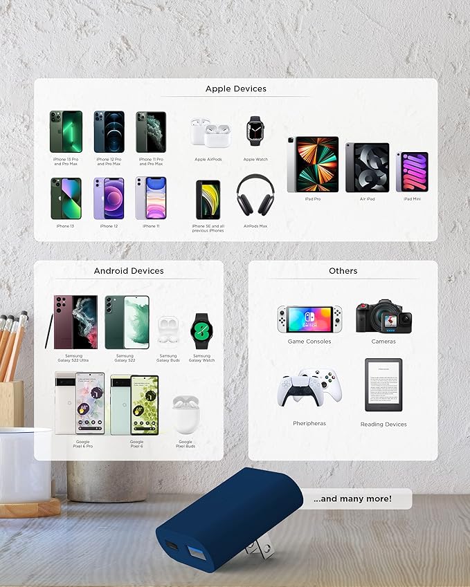 - USB A Charging Block: iHome's USB wall charger multiport also includes a dedicated USB A port that can also be used to charge your phone, tablet, Apple Watch, video game controllers, cameras, and more.