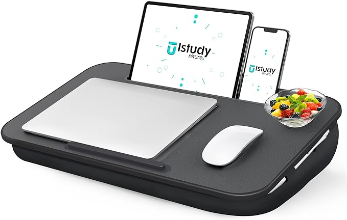 - 1. [Ergonomic Cushion]: The Cushion of the lap desks is very comfortable. which conforms to any lap and maintains Stability. Giving you a stable surface
