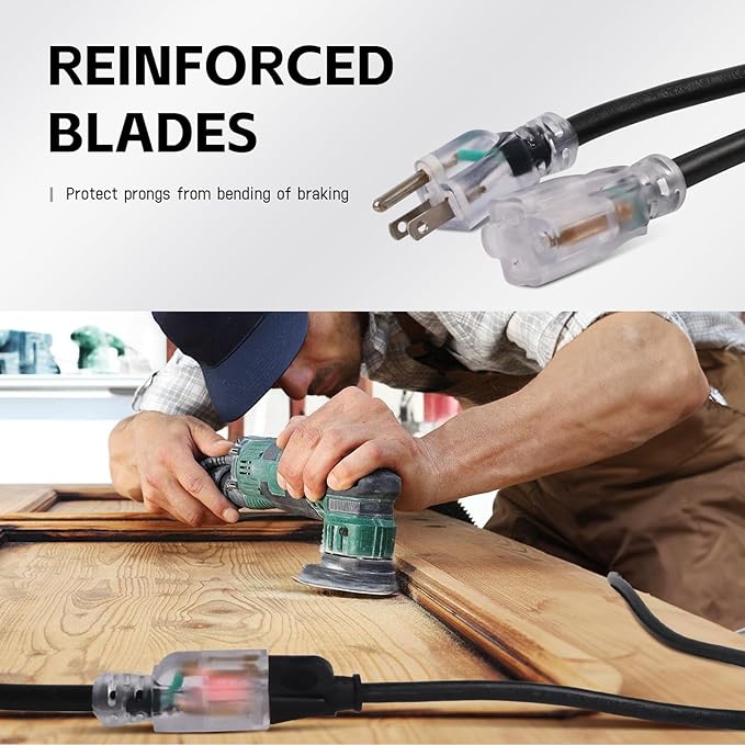 - LED Lighted End for Convenience: Equipped with an LED indicator, the lighted end glows when powered, making it easy to locate in the dark and confirming when the cord is ready to use. Perfect for nighttime projects or outdoor setups
