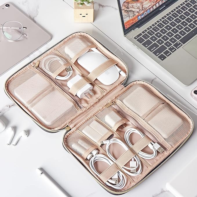 - QUICK-ACCESS-This compact style opens out flat, providing easy access to your tech accessories on the go
