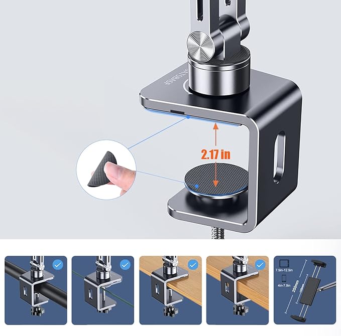 - High Compatibility: Our Gooseneck Phone and Tablet Holder is compatible with 4~12.9 inch devices, Such as iPhones, iPads, and other smartphones and tablets