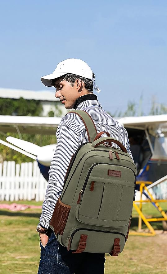 Tzowla Canvas Laptop Backpack, Bag for Men Women,Travel Work Rucksack Fits 15.6 Inch Laptop, Bookbag with USB Charging Port