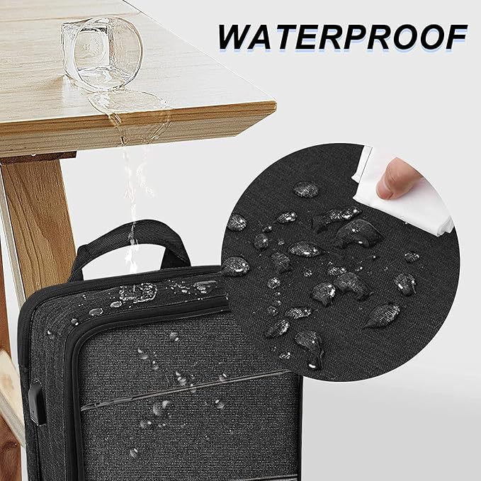 - Protection & Organization: A separate compartment with soft velvet lining protects your device. The rugged exterior, made of water-resistant polyester, is durable, shockproof, and scratch-resistant, offering optimal protection for your laptop. Two front pockets and one side pocket provide ample space for laptop accessories, chargers, cables, a mouse, a water bottle, and an umbrella.