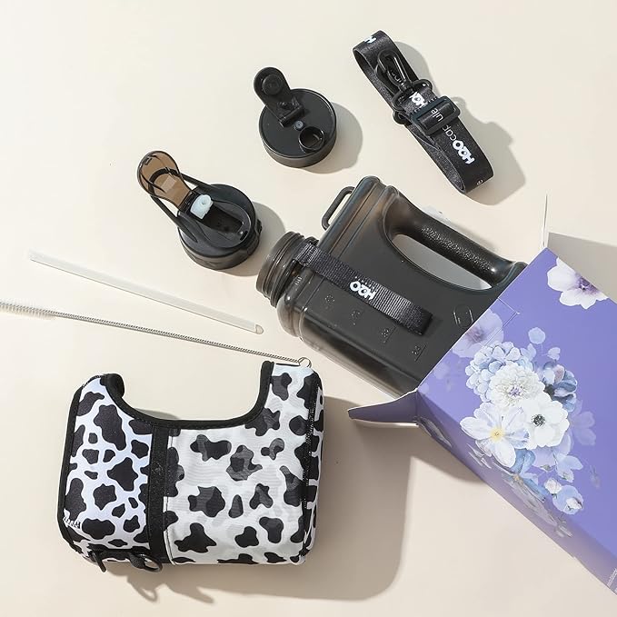 H2O Capsule Half Gallon Cube Square Water Bottle - 2.2L Water Bottle with Strap, Storage Sleeve, Covered Straw and Chug Lid – BPA Free Reusable Sports Water Jug with Handle, (68 Ounce), (Cow)