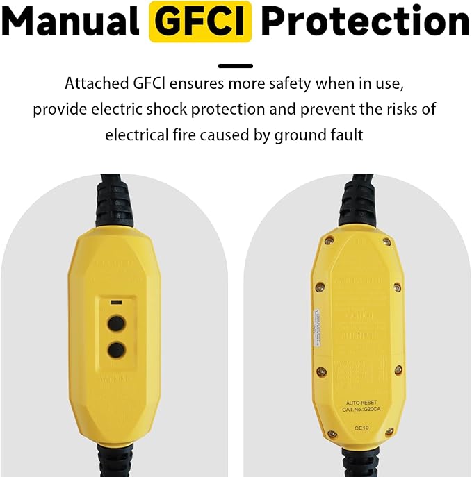 - Manual GFCI Protection - Attached GFCI ensures more safety when in use, provide electric shock protection and prevent the risks of electrical fire caused by ground fault; it need to push the reset button to restore the power after interruption,please check your devices before push it to ensure the safety.