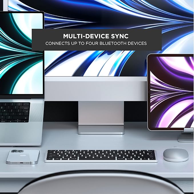 - Multi-Device Bluetooth - Equipped with easy-to-use Bluetooth keys to assign up to four devices – perfect to type across your laptop, tablet or smartphone with a press of a button