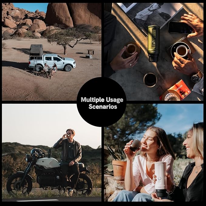 - 【2-in-1 BREWER & ONE-BUTTON CLICK】: Compatible with both Ground Coffee & Capsule, the camping coffee maker has been tested with hundreds of designs to ensure ease of use. With just ONE-BUTTON CLICK, you can enjoy perfect espresso in just 3-4 minutes.