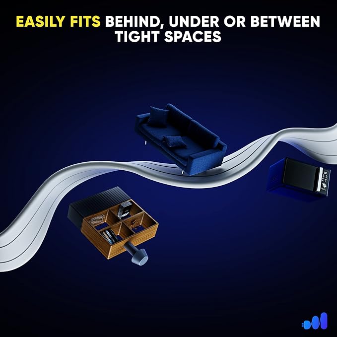 - Versatile Usage: 360° Flat Plug Extension Cord is the best extension cord to fit through tight spaces, fits behind your coach, behind Desks, Behind Appliances and more.