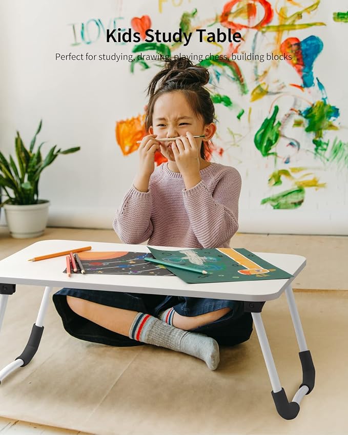 Ruxury Folding Lap Desk Laptop Stand Bed Desk Table Tray, Breakfast Serving Tray, Portable & Lightweight Mini Table for Sofa Couch Floor - - White