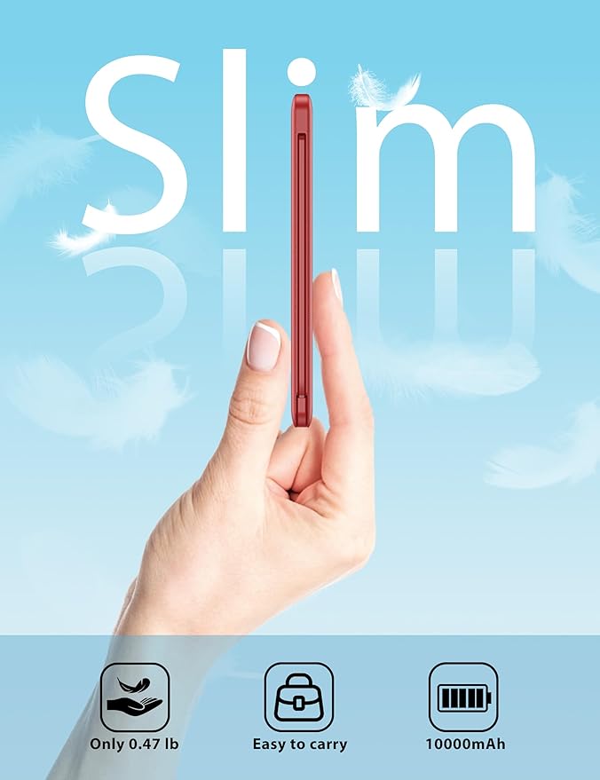 - High Capacity: Contains 10000mAh of power. Enough to provide over 2 entire replacement charge for iPhone 16, for iPhone 15 and Samsung Galaxy S24. 10000mAh can meet your daily electricity demand. And its body is slim, 5.59*2.75*0.57inch like a little phone that you can carry it in your handbag. It will be your most important partner daily. And when you are traveling or on a business trip that will be helpful