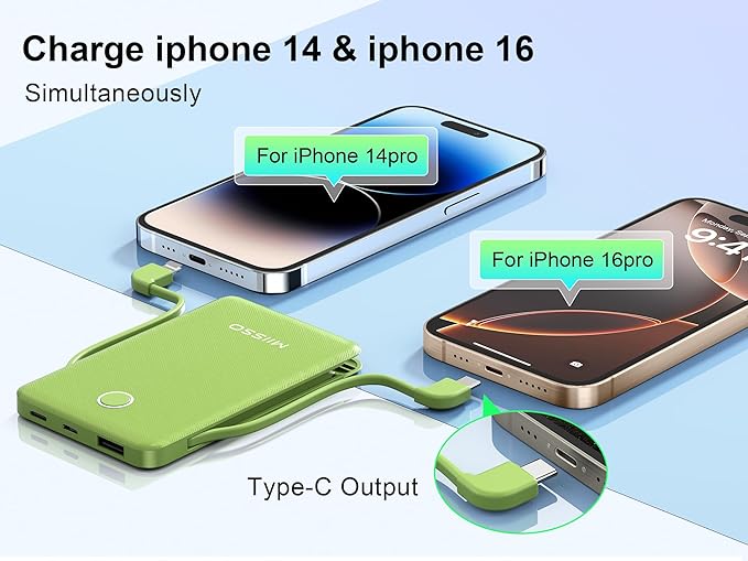 - Credit Card Size: It is the slimmest and the smallest of MIISSO portable chargers with cables, only 0.27lb(122g) and its body like a credit card. The lightweight design lets you take it out without pressure. It's slim enough to put it in your pocket or in your handbag.