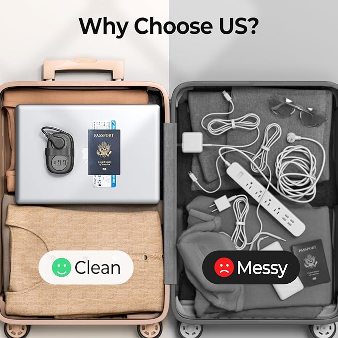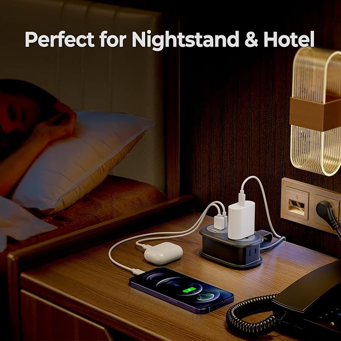 - 【Portable Travel Power Strip】Designed with travel in mind, measuring just 4*2.4*1.6″. Our travel power strip is ingeniously crafted to free up valuable space in your laptop bag, purse, or suitcase. Experience the convenience of having multiple outlets at your fingertips without the added weight or hassle. Don't leave home without it – Travel smart with our compact power strip!