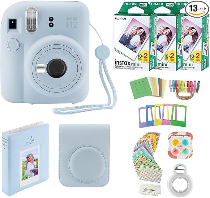 Fujifilm Instax Mini 12 Instant Camera + 60 Photo Prints + Quality Photo Value Bundle, Case, Decoration Stickers, Frames, Photo Album, (Pastel Blue)