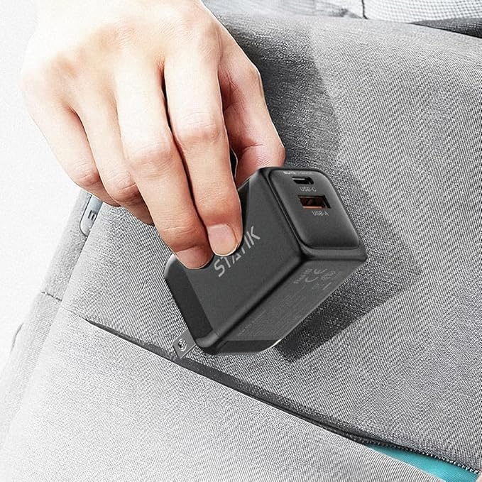 STATIK Fast-Charging GaN Power Adapter - 48W Dual USB C & USB - Foldable Compact Charger for iPhone, iPad, Samsung, Pixel - Smart Overheat Protection - Cable Not Included